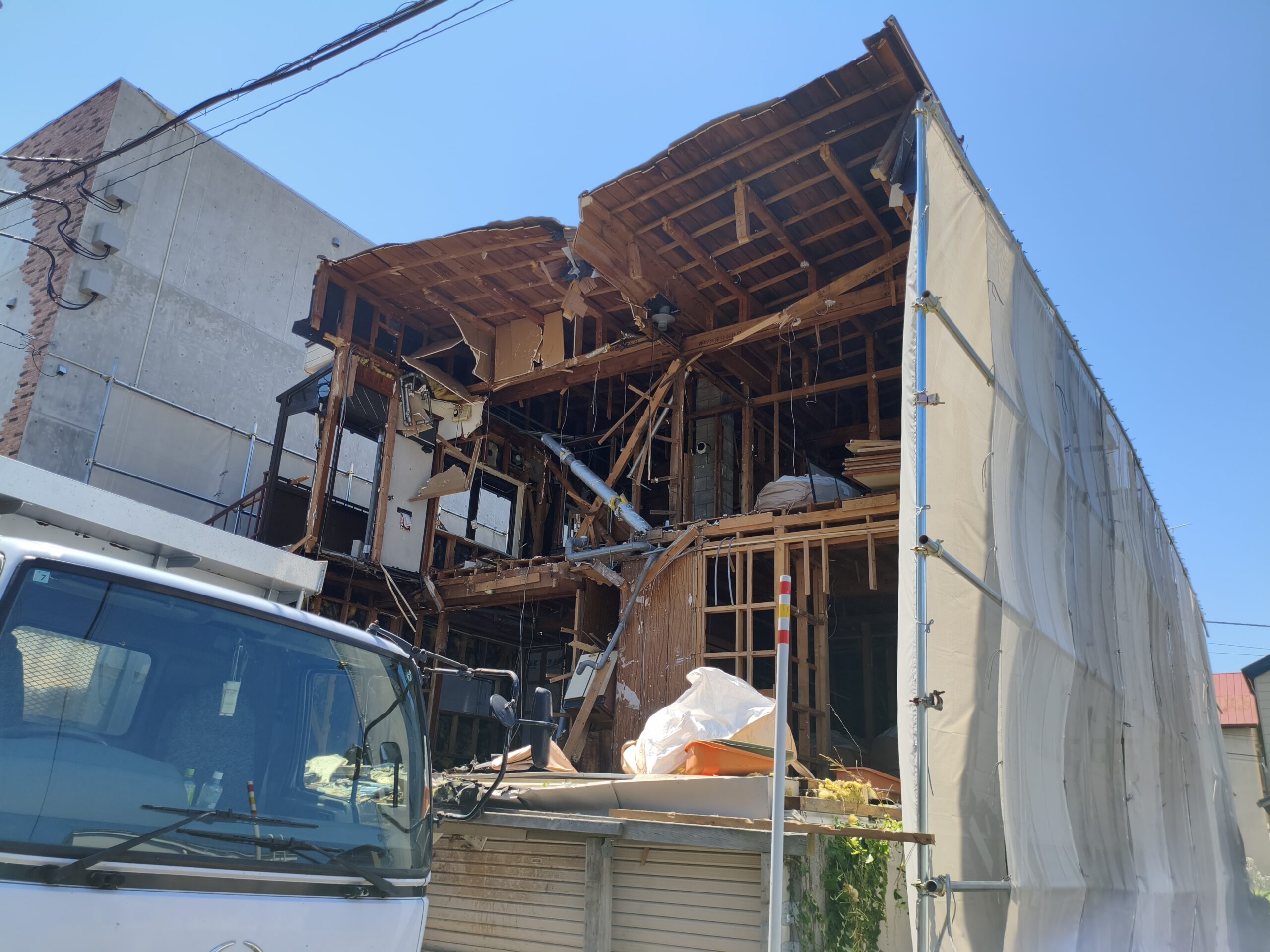 二階建て木造アパート2連棟の解体工事を行いました。