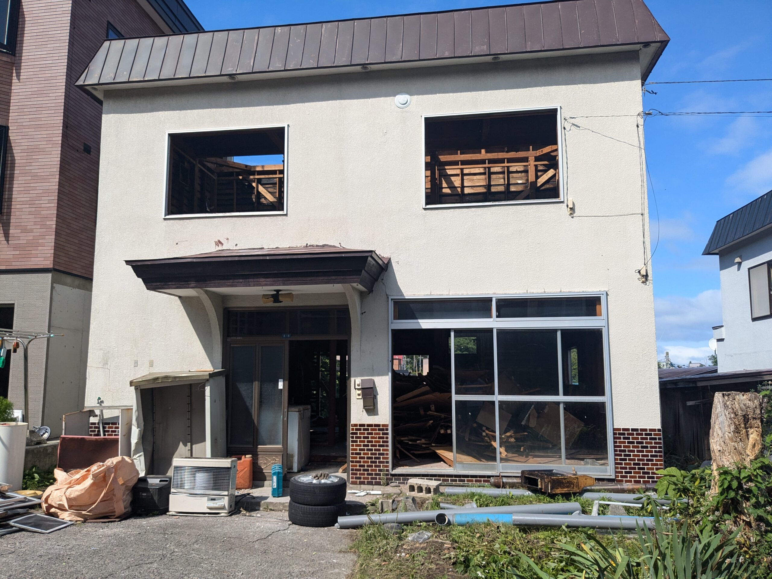 家屋解体 施工事例 【小樽市】二階建て木造一軒家の解体工事の施工事例 足場を設置後、内装解体を行い、その後重機で建物を解体しました。 施工期間は14日です。 小樽市以外の遠方の解体作業も可能ですので、お気軽にご連絡してください。