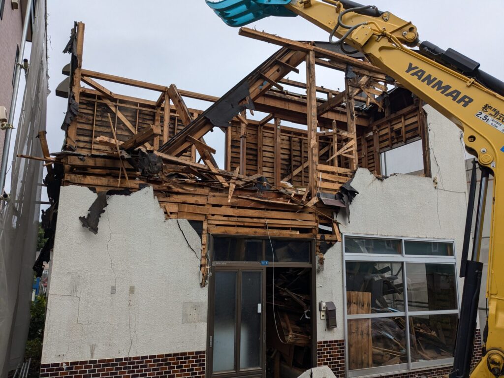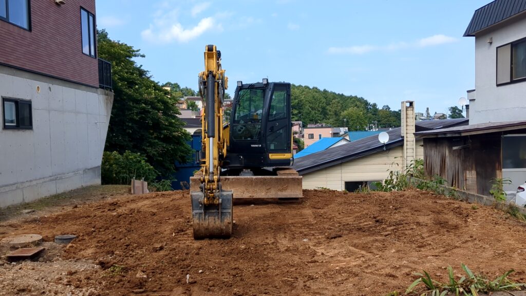 隣に住宅があったので自社で足場を組み、屋根の解体も手作業で行い、重機搬入から整地完了まで4日間で終えました。